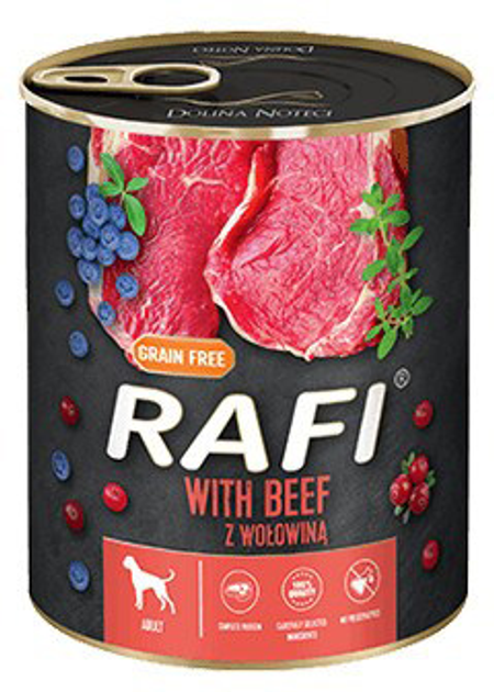 RAFI Z WOŁOWINĄ BORÓWKĄ ŻURAWINĄ MOKRA KARMA DLA PSÓW 500 G