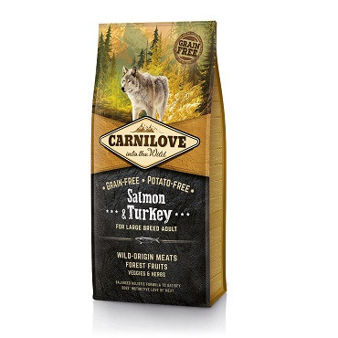 Carnilove adult large łosoś i indyk to bezzbożowa, nie zawierająca ziemniaków, doskonalej jakości karma dla dorosłych psów dużych ras. Doskonała także dla psów alergików.Formuły karm Carnilove są tak zbilansowane, że te pokarmy bardzo przypominają naturalną dietę psa. Zawierają mięso, mięśnie i kości z odpowiednim dodatkiem warzyw i ziół.