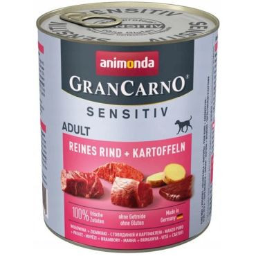 Animonda Grancarno Sensitive to naturalna dieta, przeznaczona szczególnie dla psów wrażliwych.Pokarm, tylko z jednym źródłem białka zwierzęcego, jest polecany dla psów alergików i psów mających problemy żołądkowe lub cierpiących na biegunki.